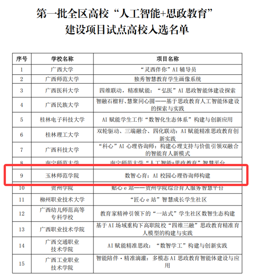 - 09-12喜讯:乐天堂f88入选第一批全区高校“人工智能+思政教育”建设项目试点单位