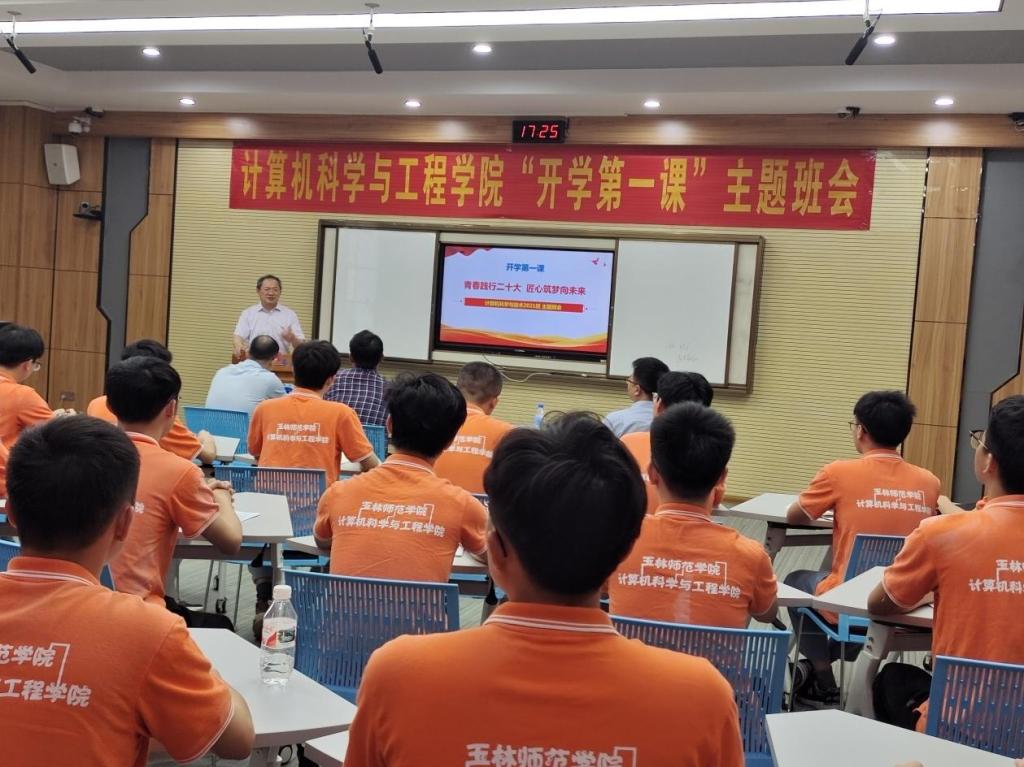 学校党委书记唐仁郭深入计算机2021班开展以“青春践行二十大,匠心筑梦向未来”为主题的“开学第一课”主题班会。班会上他指出,今年是全面贯彻落实党的二十大精神的开局之年,学习好贯彻好党的二十大精神是当前和今后一个时期最重要的政治任务。他表示,国家进入新发展阶段,以推动高质量发展为主题,必须大力发展科技生产力,充分涵养人才第一资源,努力激发创新第一动力。作为玉师学子,要抓住机遇,迎接挑战,在全面建设社会主义现代化国家中彰显自己的使命和担当,为学校建成“国内知名、区内领先,以教师教育为特色的高水平地方应用型大学”贡献青春力量。他对同学们提出四点希望:一是要坚定理想信念,厚植家国情怀,做一个信念坚定、志存高远的人;二是科学认识疫情,做一个身心健康、兴趣广泛的人;三是要主动对标,弘扬工匠精神,做一个符合新时代新工科需求的人;四要讲文明,守纪律,常怀感恩之心,做一个遵纪守法、德才兼备的人。