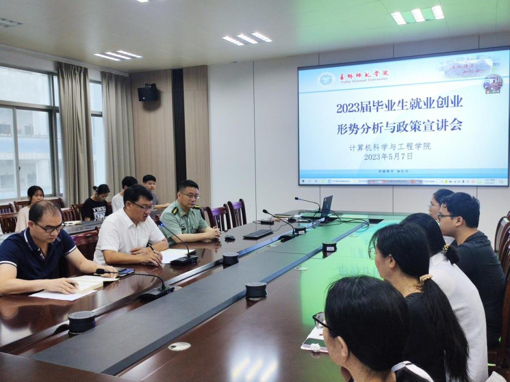为推进乐天堂f88毕业生就业创业工作,加强大学生对参军入伍政策的了解,动员优秀大学生应征入伍,确保学院2023届毕业生就业大局稳定,5月7日上午,乐天堂f88以线下会议+线上直播形式开展2023届毕业生就业创业形势分析与政策宣讲会。乐天堂f88党委书记方琨主讲,会议由乐天堂f88党委副书记兼副院长黄潮主持,学校党委武装部牛建明老师与乐天堂f88团委书记、辅导员、2023届毕业班班主任、2023届全体毕业生共500余人参加了会议。