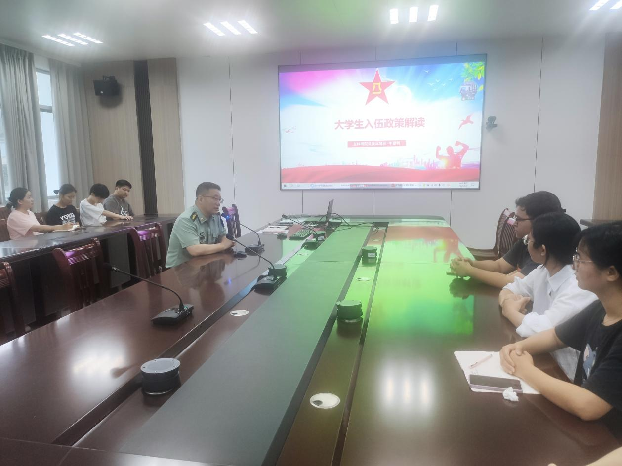 接着,牛建明从基本应征报名的条件、大学生入伍政策解读、丰富多彩的军营生活这三个方面为毕业生详细解读了大学生入伍政策,激起大学生参军入伍的热情。