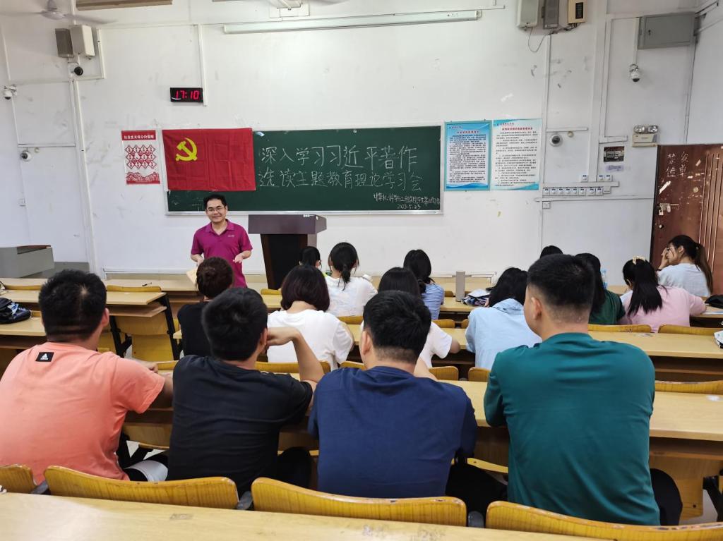 2023年5月23日下午,乐天堂f88学生第四党支部在厚德2103教室组织开展了学习贯彻习近平新时代中国特色社会主义思想主题教育专题党课。会议由党支部书记邱杰主持,全体在校生党员参加此次会议。