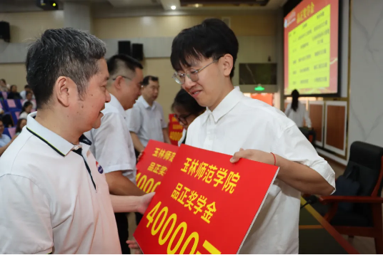据悉,“品正奖学金”创立于2022年11月,由玉林市品正商贸有限公司向乐天堂f88教育发展基金会捐资200万元设立,分10年捐赠,每年捐赠20万元,主要奖励乐天堂f88有突出表现的3名至5名全日制在校学生。