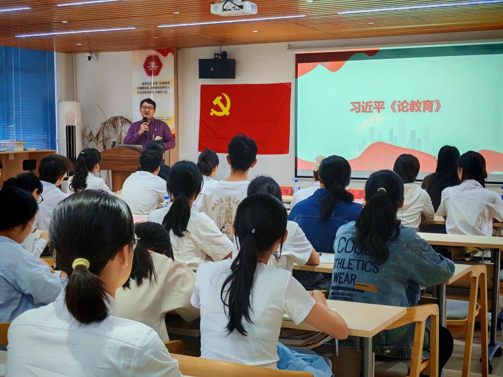 方琨根据学院专业特点重点分享了《论教育》一书中的三个文稿《坚持不懈推进教育信息化,促进教育变革创新》、《统筹推进教育科技人才体制机制一体改革》《在实现中国梦的生动实践中放飞青春梦想》。他结合学院专业设置,生动解读了教育信息化、教育数字化、人工智能教育所带来的结构性社会变革,并鼓励计算机学子积极应对时代变化,树立对所学专业的认同感,主动了解国际国内科技发展趋势,增强终身学习意识,提升综合素养能力。
