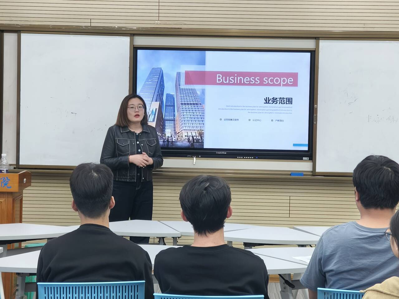会上,单芳从工作环境、招聘岗位和员工培训发展等方面向学生详细介绍了华讯科技,详细介绍了不同岗位的需求,包括技术岗位和非技术岗位的区别以及薪资范围,提出了公司的人才培养计划和对员工的期望。