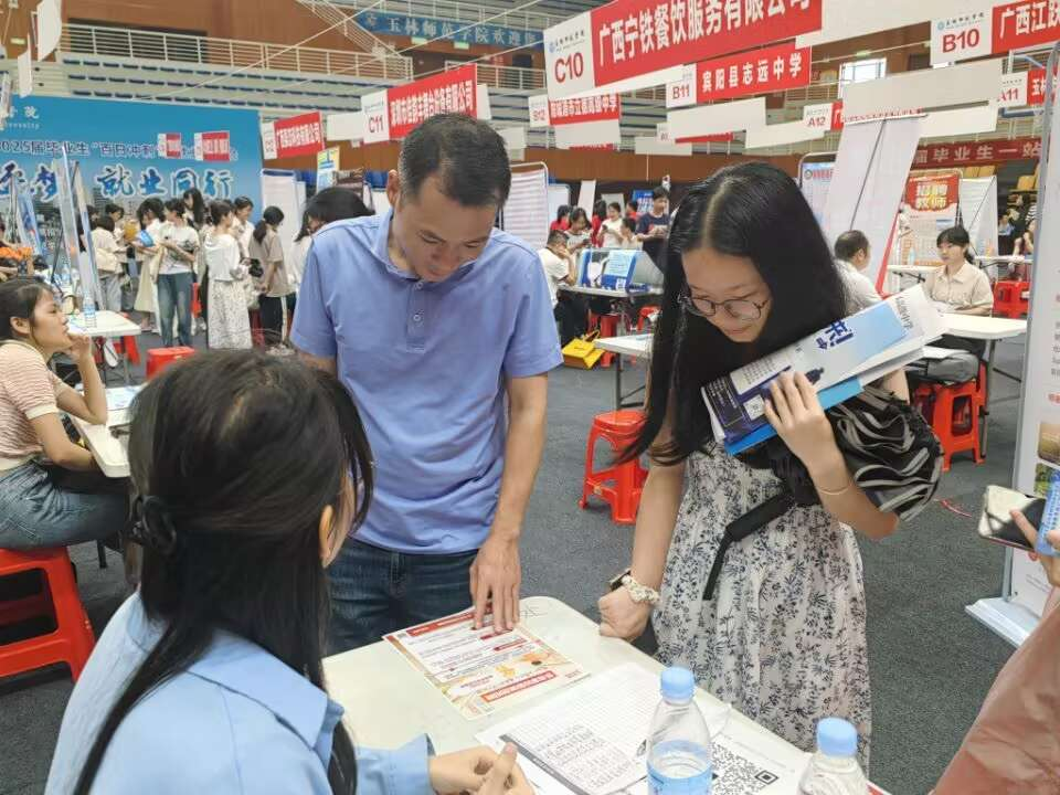 为做好学院2025届毕业生的就业服务工作,5月23日上午,乐天堂f88组织毕业生参加玉林师范学院2025届毕业生“百日冲刺”促就业双选会。学院领导书记方琨、副院长张远夏带头领导班子、辅导员以及班主任亲临双选会现场,为毕业生提供求职指导服务。