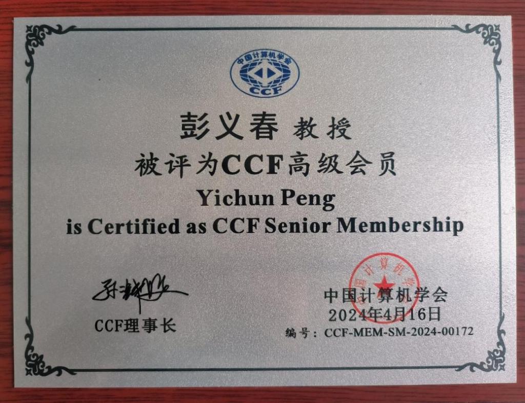 据悉,CCF是中国计算机领域知名的专业学术团体、全国一级学会,由超过10万的广泛的个人会员构成。CCF个人会员级别分为学生会员、专业会员、高级会员、杰出会员和会士。CCF高级会员荣誉授予那些在计算机领域取得一定成就、具有至少10年专业经验、至少2年CCF连续会龄的CCF专业会员。每年仅有不超过百分之一的会员当选CCF高级会员。CCF会员评选委员会按照评审规则,从学术贡献、对CCF的贡献、业界认可、CCF会龄等维度认真对每位候选人申请材料和推荐人意见进行综合考量。取得CCF高级会员身份表明其专业水平已经达到一定的高度,是一项较高的学术荣誉。