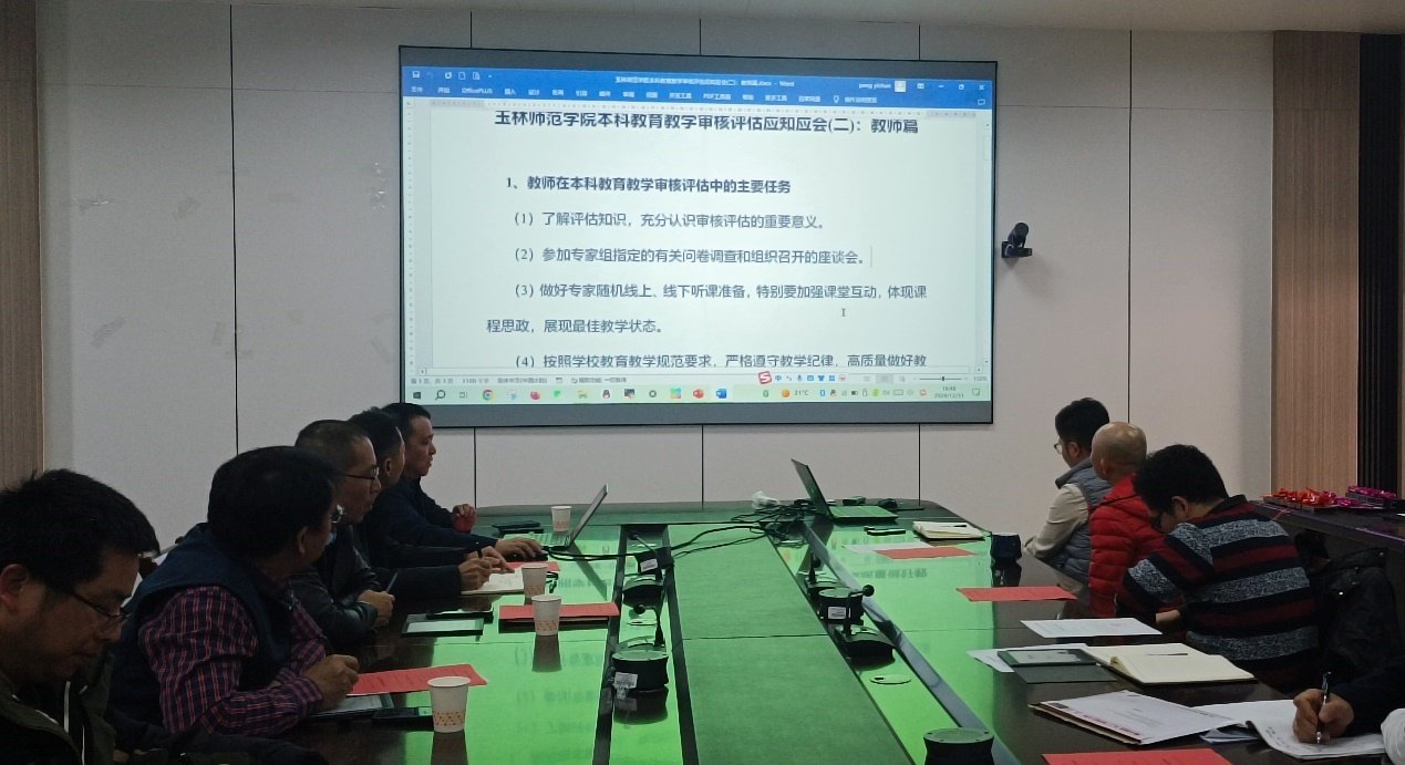 会上,彭义春带领全体教师认真学习了《玉林师范学院本科乐天堂f88审核评估应知应会(二):教师篇》,他详细阐述教师在本科乐天堂f88审核评估中的工作要点;他要求每位教师须明确工作方向和深入领会自己的角色与责任;他强调,课堂教学管理是本科乐天堂f88审核评估中的重点内容,要以审核评估为契机,进一步加强课堂教学管理,规范课堂教学行为;同时,要结合教学管理相关文件,按照课堂教学出现的问题进行及时整改,将工作真正落实到实处。